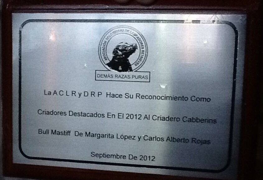Escogidos como mejor criadero 2 años consecutivos en el año 2012.